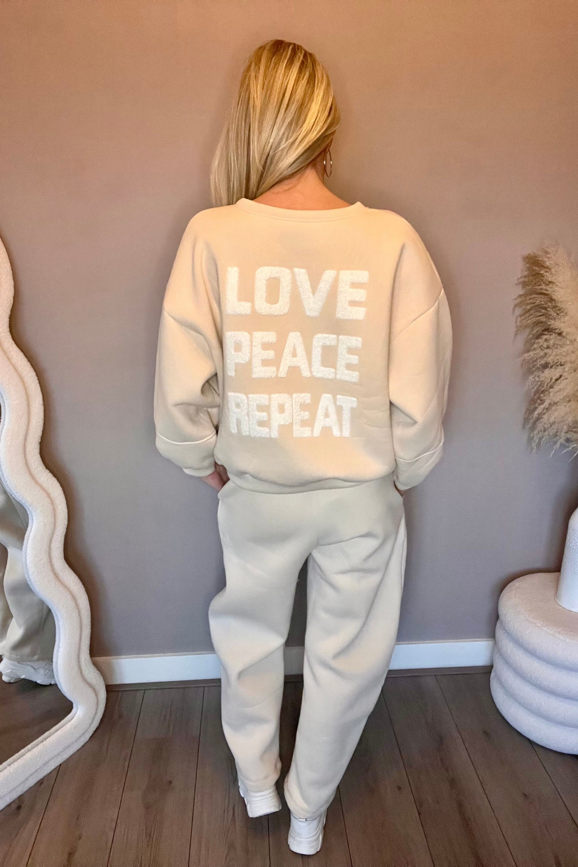 Love Peace Repeat Sweater Beige