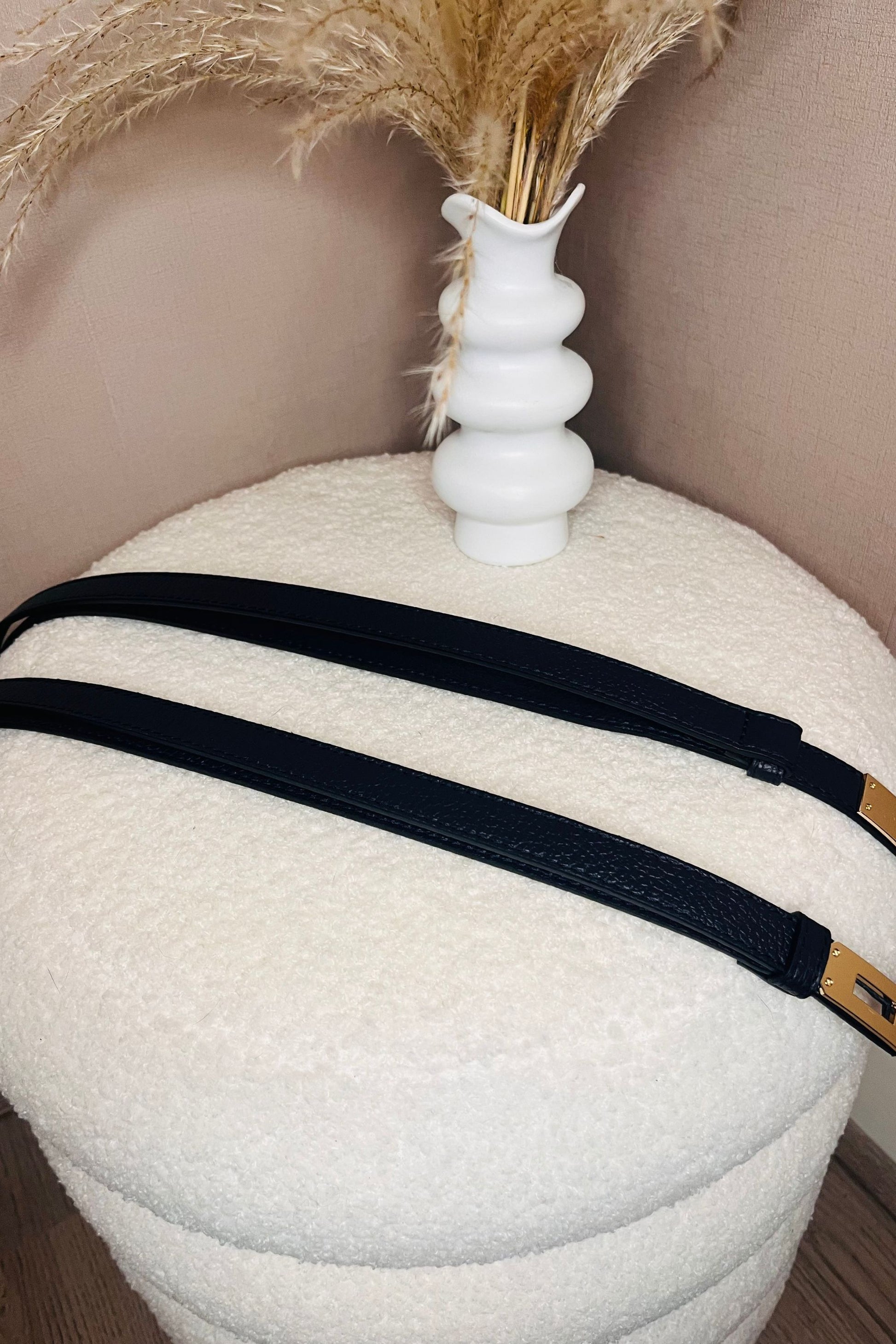 De Stella riem in Navy Blue doet niet aan subtiel. Mooi, echt leer, en een goudkleurige klik-en-draai gesp die gezien mag worden. Volledig verstelbaar van 60 cm tot 110 cm en perfect om power toe te voegen aan elke outfit. Tijdloos, classy en stoer.